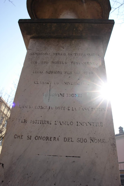 Dedica al tenore Carlo Guasco - "Nell'arte del canto valentissimo, in tutta l'Europa ammirato, interpretò con sublime magistero le divine note di Verdi e di Bellini"